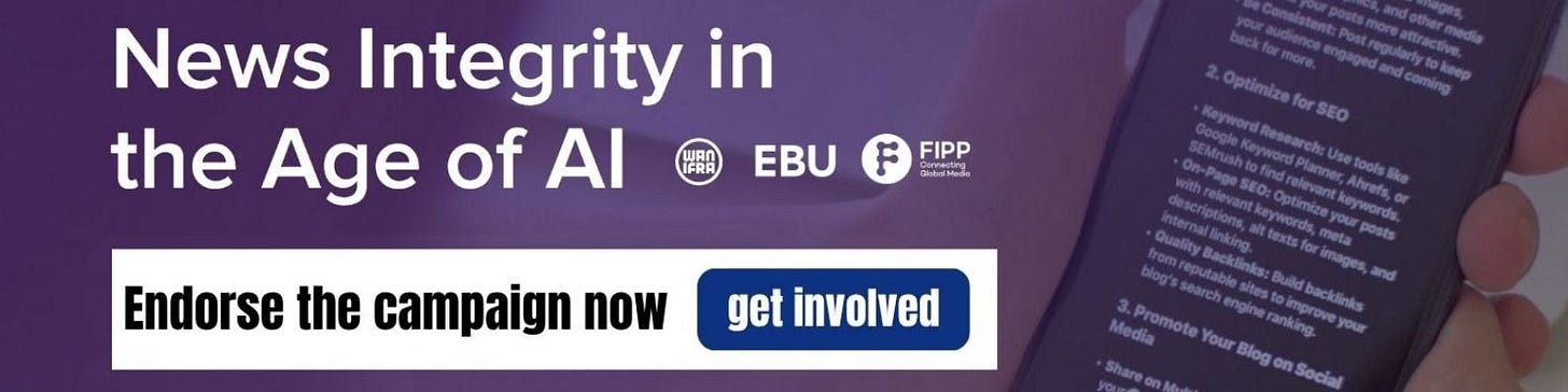 In this spirit, WAN-IFRA, the EBU and the FIPP have joined forces to defend five principles essential to preserving the integrity of news in the age of AI. Thousands of public and private news media around the world have joined the initiative, calling on AI developers to help ensure that Artificial Intelligence is safe, reliable, and beneficial to the news ecosystem and the public. The initiative – News Integrity in the Age of AI – proposes five key principles for a joint code of practice, inviting technology platforms to open dialogue and cooperation with media companies to counter the misinformation crisis and protect the value of trusted news.